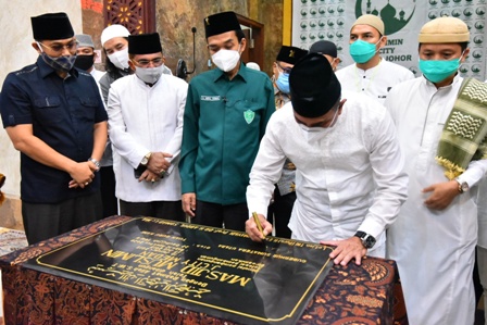 EKSISNEWS.COM, Medan – Gubernur Sumatera Utara (Gubsu) Edy Rahmayadi bersama Ustaz Abdul Somad (UAS) meresmikan Masjid Muslimin di Kompleks J City Medan, Rabu (12/8/2020) malam. Peresmian masjid ditandai dengan penandatanganan prasasti dan doa bersama.