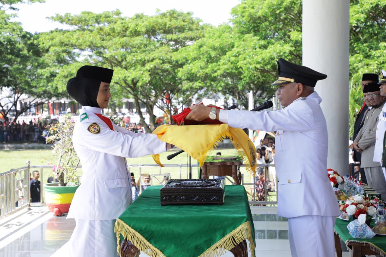 Plt. Bupati Asahan H. Surya, B.Sc. bertindak sebagai Inspektur Upacara yang diawali dengan pembacaan Naskah Proklamasi oleh Ketua DPRD Kabupaten Asahan, H. Benteng Panjaitan, SH., M.Si. dihadiri Forkopimda Asahan beserta seluruh jajarannya, Sekda beserta OPD Kabupaten Asahan, Plt. Ketua TP. PKK Kabupaten Asahan, Camat, Tokoh Agama, Tokoh Masyarakat, Tokoh Pemuda, Veteran serta ribuan masyarakat yang ingin menyaksikan prosesi penaikan bendera kebangsaan NKRI.