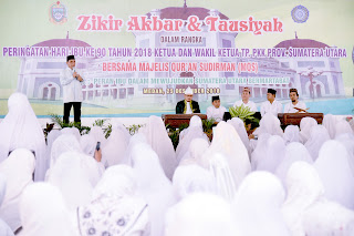 Hal ini disampaikannya saat menghadiri Zikir Akbar dan Tausiyah dalam rangka Peringatan Hari Ibu ke 90 Tahun 2018 bersama Ketua TP PKK Provsu Nawal Lubis Edy Rahmayadi di Pendopo Rumah Dinas Gubernur Jalan Sudirman Nomor 41 Medan, Selasa (25/12). “Mengasihi dan memuliakan ibu itu bukan cuma pada hari Ibu saja, setiap hari. Mudah-mudahan lancar hidup kita. Apalagi Ibu masih ada di dekat kita, kita jaga dan rawat dia di masa tuanya,” kata Gubsu.