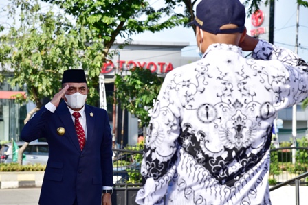 EKSISNEWS.COM, Medan – Upacara Peringatan Hari Guru Nasional Tahun 2020 dan Hari Ulang Tahun (HUT) ke-75 Persatuan Guru Republik Indonesia (PGRI) yang dilaksanakan di Taman Makan Pahlawan (TMP) Bukit Barisan, Jalan Sisingamangaraja Medan berlangsung dengan hikmat. Gubernur Sumatera Utara (Sumut) Edy Rahmayadi bertindak sebagai inspektur upacara.