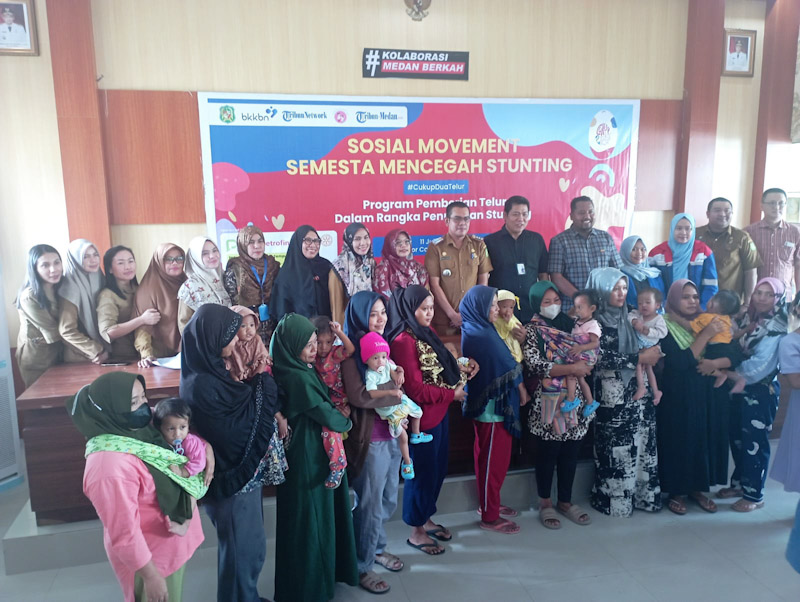Kegiatan bertajuk Sosial Movement Semesta Mencegah Stunting, program pemberian telur dalam rangka penurunan stunting ini memberikan bantuan sejumlah telur kepada sejumlah anak yang berada di Kecamatan Medan Marelan, Selasa (11/07/2023).