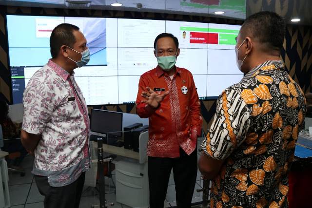 EKSISNEWS.COM, Medan – Pjs Wali Kota Medan Ir Arief Sudarto Trinugroho MT melakukan pengecekan data jumlah kasus terbaru Corona Virus Disease 2019 (Covid-19) Kota Medan di Command Center Balai Kota Medan, Jalan Kapten Maulana Lubis, Kamis (1/10/2020). Hal ini dilakukan guna mengetahui data kasus pasien baik yang masuk dalam kategori orang dalam pemantauan (ODP), orang tanpa gejala (OTG), pasien dalam pengawasan (PDP) maupun pelaku perjalanan (PP).