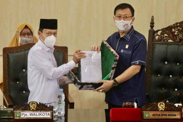 Terakhir, kepada para anggota dewan yang hadir baik secara langsung maupun melalui sambungan virtual, serta sejumlah pimpinan OPD dan camat se-Kota Medan, Pjs Wali Kota berharap prioritas pembangunan kota yang ditetapkan diharapkan mampu secara bertahap dan berkesinambungan mengatasi persoalan-persoalan dasar pembangunan kota.