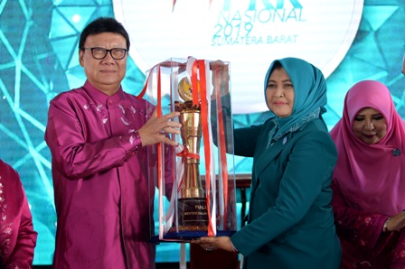 Piala bergilir Juara Umum Nasional diserahkan Menteri Dalam Negeri Tjahjo Kumolo selaku Pembina PKK Pusat kepada Ketua TP PKK Provinsi Sumut Nawal Edy Rahmayadi, serta disaksikan Ketua TP PKK Pusat Erni Guntarti Tjahjo Kumolo, Dirjen Bina Pemerintahan Desa Kemendagri Nata Irawan, Gubenur Sumatera Barat (Sumbar) Irwan Prayitno dan Ketua TP PKK Sumbar Nevi Zuairina Irwan Prayitno.