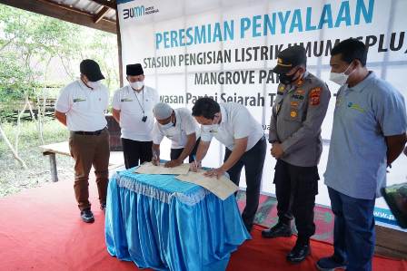 PLN Resmikan SPLU Dikawasan Wisata Batubara Mangrove Park – Pantai Sejarah Perupuk