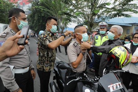 Plt Bupati Asahan Bersama dengan Polres Asahan Bagikan Masker Kepada Masyarakat