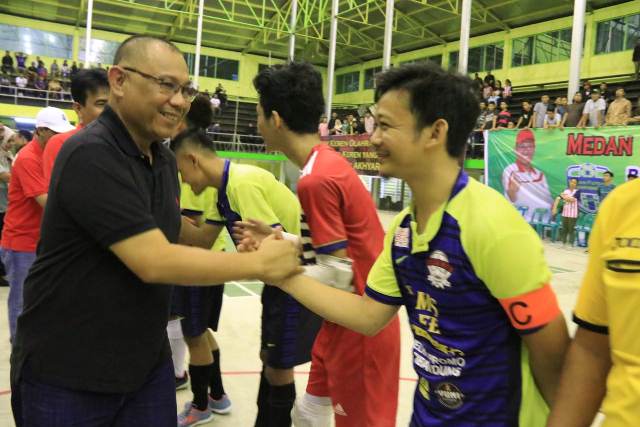MEDAN, Eksisnews.com – Pelaksana tugas (Plt) Wali Kota Medan Ir H Akhyar Nasution MSi menyerahkan hadiah kepada sejumlah pemenang turnamen futsal pada malam penutupan Medan Futsal Championship 2020 di Gedung Olah Raga (GOR) Bulutangkis, Jalan Veteran Medan, Kecamatan Medan Perjuangan, Senin (27/1) malam.