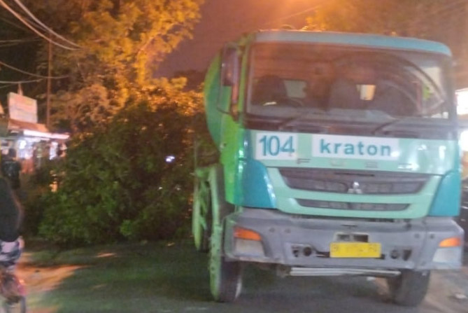 “Bagian atas truk (molen) tersangkut cabang, menyebabkan cabang pohon tumbang,” kata Fariz.