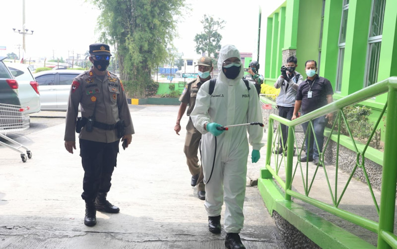 “Mendekati Hari Raya Idul Fitri tingkat kegiatan masyarakat akan semakin meningkat khusus nya di Pasar Pasar yang ramai dikunjungi, maka dari itu kita sterilkan beberapa tempat dengan cairan disinfektan,” ujar Dansat Brimob Polda Sumut Kombes Pol Suheru, S.I.K.,M.H. Melalui Kabag Ops Kompol Heriyono. Kompol Heriyono menambahkan, hari ini, Selasa(11/05/21) bersama unsur 3 pilar kita lakukan penyemprotan di Pasar Sambu, Pasar Meranti, Pasar Muara Takus serta rumah ibadah sebagai upaya pencegahan penyebaran Covid-19.