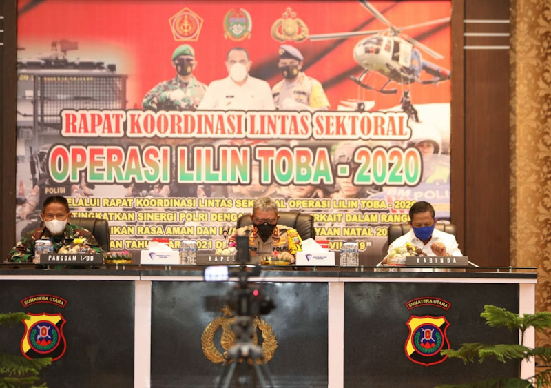 EKSISNEWS.COM, Medan – Kapolda Sumut, Irjen Pol.Drs.Martuani Sormin,M.Si, secara langsung memimpin rapat dalam rangka mengikuti acara kegiatan Rapat Koordinasi Lintas Sektoral Ops lilin Toba 2020 bertempat di Aula Tribrata Mapolda Sumut, Selasa (15/12/20) sekira jam 10.00 WIB.