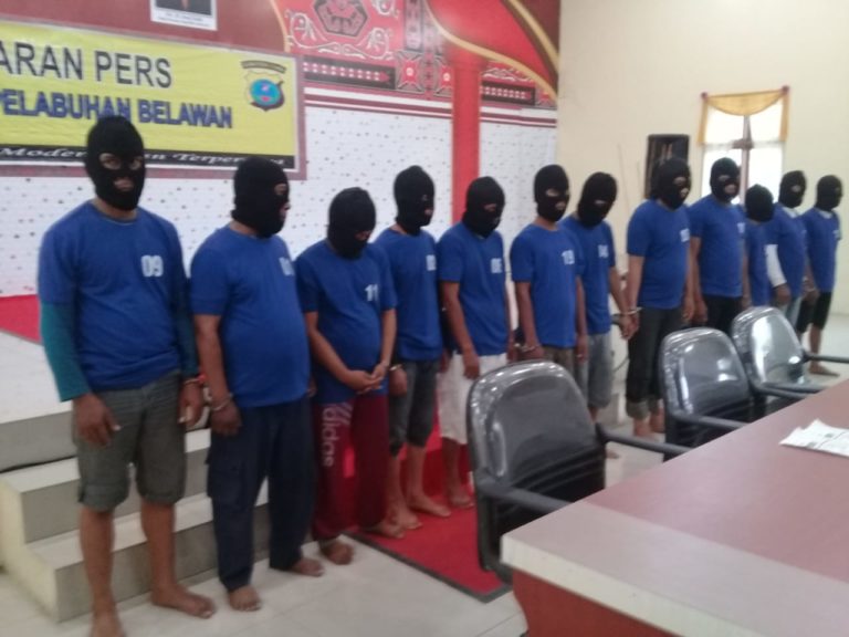 BELAWAN, Eksisnews.com – Petugas Kepolisian Resort Pelabuhan Belawan berhasil menciduk 12 tersangka penyalahgunaan narkoba dari tiga lokasi yang berbeda