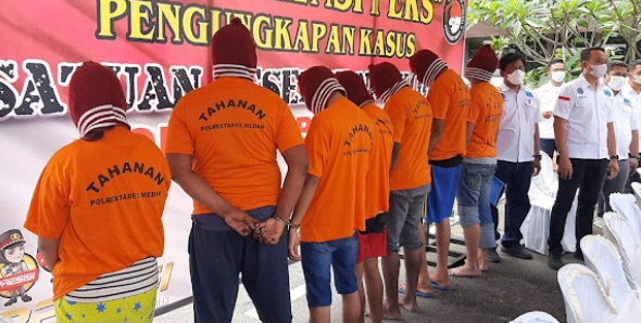 Dari hasil penangkapan, 8 pelaku berhasil diamankan masing-masing berinisial S (22), GS (43), MJ (26), HS (26), I (47), SNU (30), FS (26), dan EA (38).