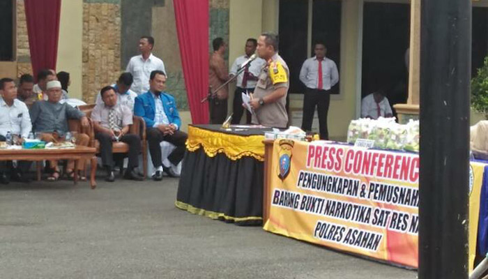 Seluruh barang bukti dimusnahkan setelah mendapat persetujuan dari tim laboratorium Direktorat Narkoba PoldaSu. Pemusnahan barang bukti juga disaksikan oleh Forkopimda Asahan, tokoh masyrakat serta tokoh agama.(Akm)