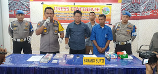 “Tersangka diamankan saat sedang menimbang sabu-sabu dengan timbangan elektrik di dalam kamar nya. Barang bukti yang disita dari dalam kamar pelaku yakni 3 bungkusan plastik klip, masing-masing 1 plastik klip ukuran besar berisi sabu, 2 plastik klip ukuran sedang berisi sabu, timbangan elektrik, 3 plastik klip kosong dan satu unit handphone. Total barang bukti sabu-sabu yang disita seberat 32,19 gram,” jelas Kapolres Asahan AKBP Faisal F. Napitupulu, S.I.K., M.H. di dampingi Kasat Narkoba AKP Antony Tarigan saat menggelar temu pers di Mapolres Asahan, Selasa (08/01/2019).