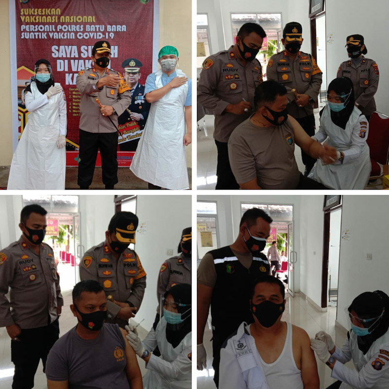 “Yang pertama kita lakukan dengan penyntikan awal sebanyak kurang lebih 400 Vaksin Cinovac yang kita bagi di seluruh jajaran kepada anggota kepolisian polres Batubara.