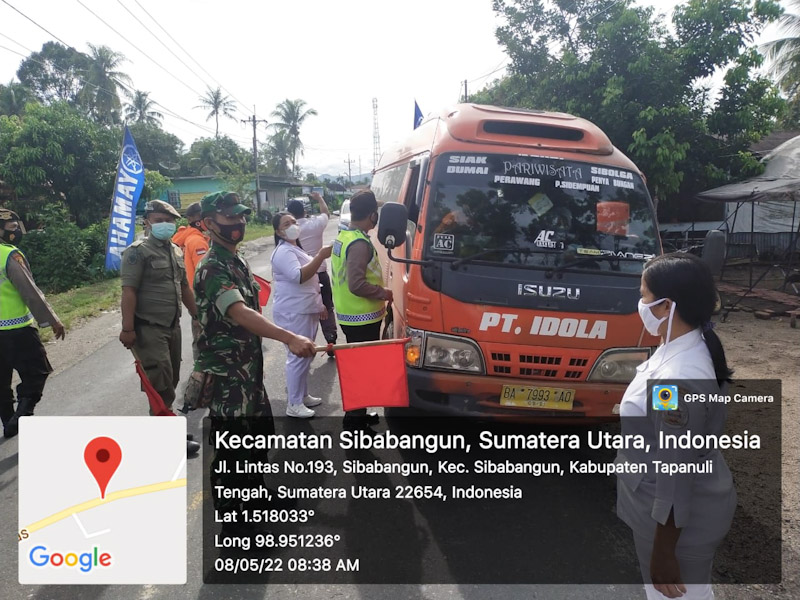 Kegiatan yang dilaksanakan di Pos Pengamanan Sibabangun sekat wilayah Tapteng dengan Tapsel, Tim Tenaga Kesehatan (Nakes) Puskesmas Sibabangun yang bertugas pada Pos Pengamanan dengan didampingi Personil Polri dari Polsek Sibabangun, TNI, Dishub dan Satpol PP Tapteng memberikan Pelayanan Vaksin kepada Pengendara maupun penumpang yang hendak memasuki Wilayah Tapteng.