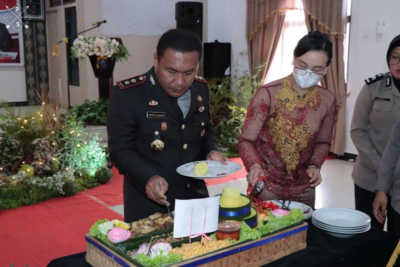 Dalam acara itu, pemotongan nasi tumpeng oleh Kapolres Tapteng Jimmy Christian Samma S.I.K bersama ketua Bhayangkari Cabang Tapteng, dilanjutkan penyerahan nasi tumpeng kepada PJ. Bupati Tapteng Yetty Sembiring.