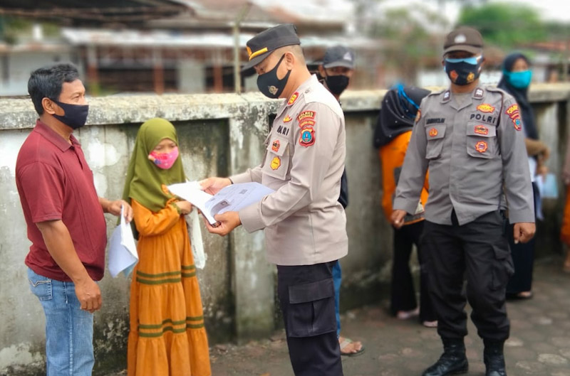 Kami mengajak masyarakat untuk menjaga jarak juga jangan berdesakan dalam antrian pengambilan BST, di laksi kami juga membantu mengambilkan langsung BST kepada masyarakat lansia yang tak mampu mengantri serta membagikan sembako sebagai sedekah Jumat, ” ucap Kapolsek.