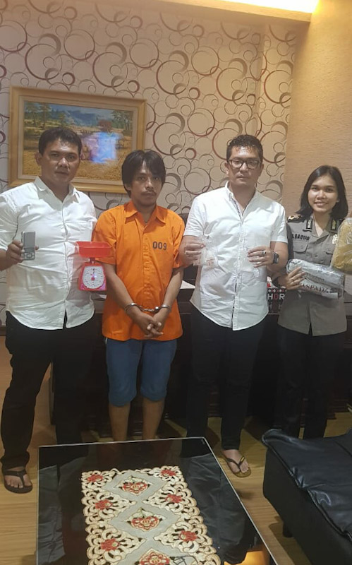 Tanpa membuang-buang waktu, oleh petugas yang melakukan penyamaran di tempat lokasi yang ditentukan oleh tersangka (TKP, red) langsung saja petugas yang berada di lokasi TKP langsung meringkus tersangka yang tiba di lokasi dengan mengendarai sepeda motor Honda Beat BK 3675 AIF warna hitam.
