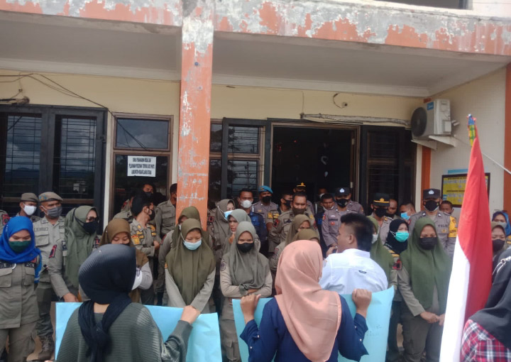 Sementara Kabid Pengaduan Torkis Hamdani saat menerima aspirasi pengunjuk rasa menyampaikan permohonan maaf kepada pengunjuk rasa, karena Kadis tidak berada ditempat, namun tuntutannya akan disampaikan.
