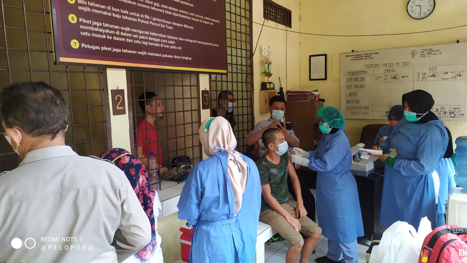 Kapolsek Percut Sei Tuan, Kompol Agustiawan ST SIK menjelaskan kegiatan vaksinasi massal diberikan kepada 54 orang tahanan dengan dosis I dan II yang bekerjasama dengan Tenaga Kesehatan (Nakes) dari RS Pirngadi Medan.