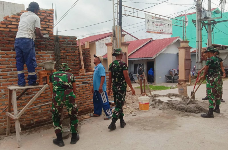 Prajurit TNI Bersama Masyarakat Membangun Pos Kamling