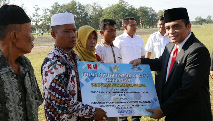 Bantuan secara simbolis diberikan langsung oleh Plt. Direktur Utama PTPN IV Umar Affandi, didampingi dari Kementerian BUMN Kepala biro Perencanaan, SDM, dan Organisasi Ony Suprihartono, Kepala Bagian Organisasi dan Reformasi Birokrasi Muhammad Rizal Kamal, dari PT Kawasan Industri Medan (Persero) Direktur Keuangan, SDM dan Umum Adler Manarissan Siahaan serta Direktur Operasional Perum Jasa Tirta I Alfan Rianto.