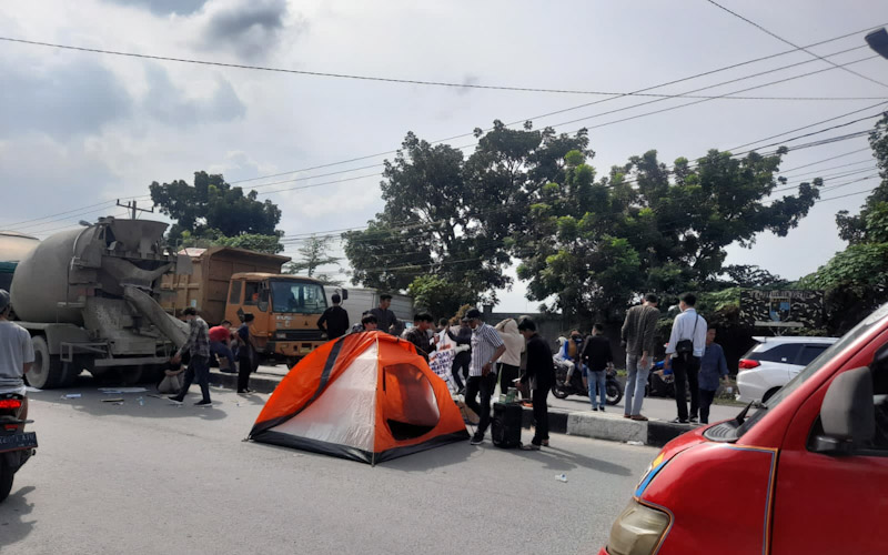 Protes Jalan Rusak, Sejumlah Mahasiswa Dirikan Tenda di Tengah Jalan
