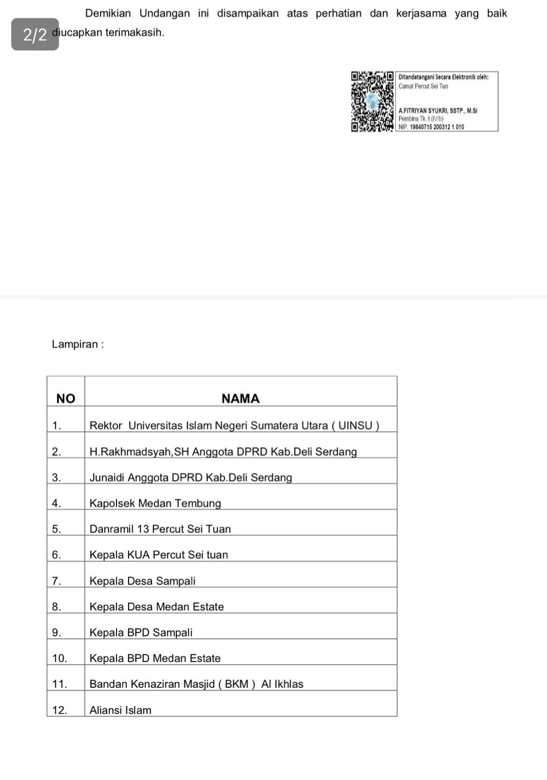 Sudah tertera jelas di dalam surat undangan camat percut sei tuan, No 000.1.5/2596, bahwasannya MUI deli serdang dan BWI deli serdang tidak dicantumkan dalam daftar nama peserta undangan rapat dan haram hukumnya datang tanpa di undang secara sah,” ujar Rafi Siregar.