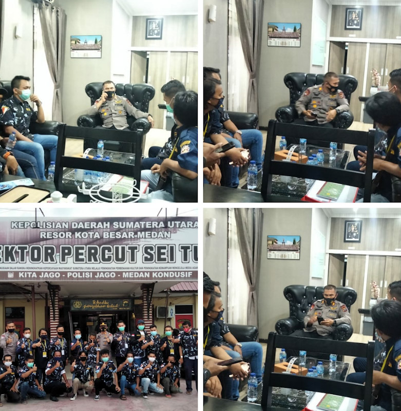 EKSISNEWS.COM, Medan – Guna menjalin koordinasi dan komunikasi yang baik antara Polsek Percut Sei Tuan dengan organisasi kepemudaan, Rayon AMPI Medan Tembung beraudensi dengan Kapolsek Percut Sei Tuan AKP Janpiter Napitupulu SH pada Kamis (4/3/2021).