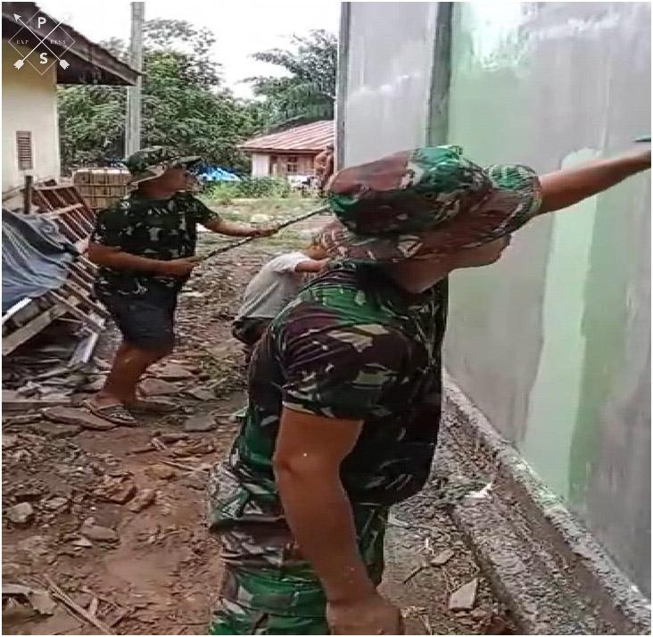 Rehab Madrasah RA Alfa Rukiyah Hampir Tuntas,Satgas Lanjutkan Pengecatan Dinding Samping dan Belakang