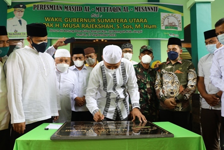 Sementara itu, Bupati Serdangbedagai Darma Wijaya dalam sambutannya menyampaikan rasa terima kasih kepada Wagub Sumut Musa Rajekshah atas pembangunan Masjid Al Muttaqin Al Musannif di daerahnya. Untuk itu, dia meminta kepada kenaziran masjid agar merawat masjid ini dengan baik.