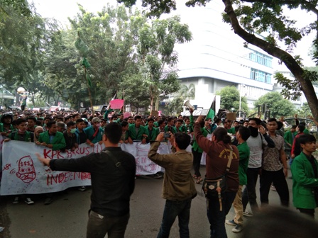 Aksi yang datang dalam dua gelombang massa itu, membawa spanduk besar yang bertuliskan ‘KPK Harus Independen’.
