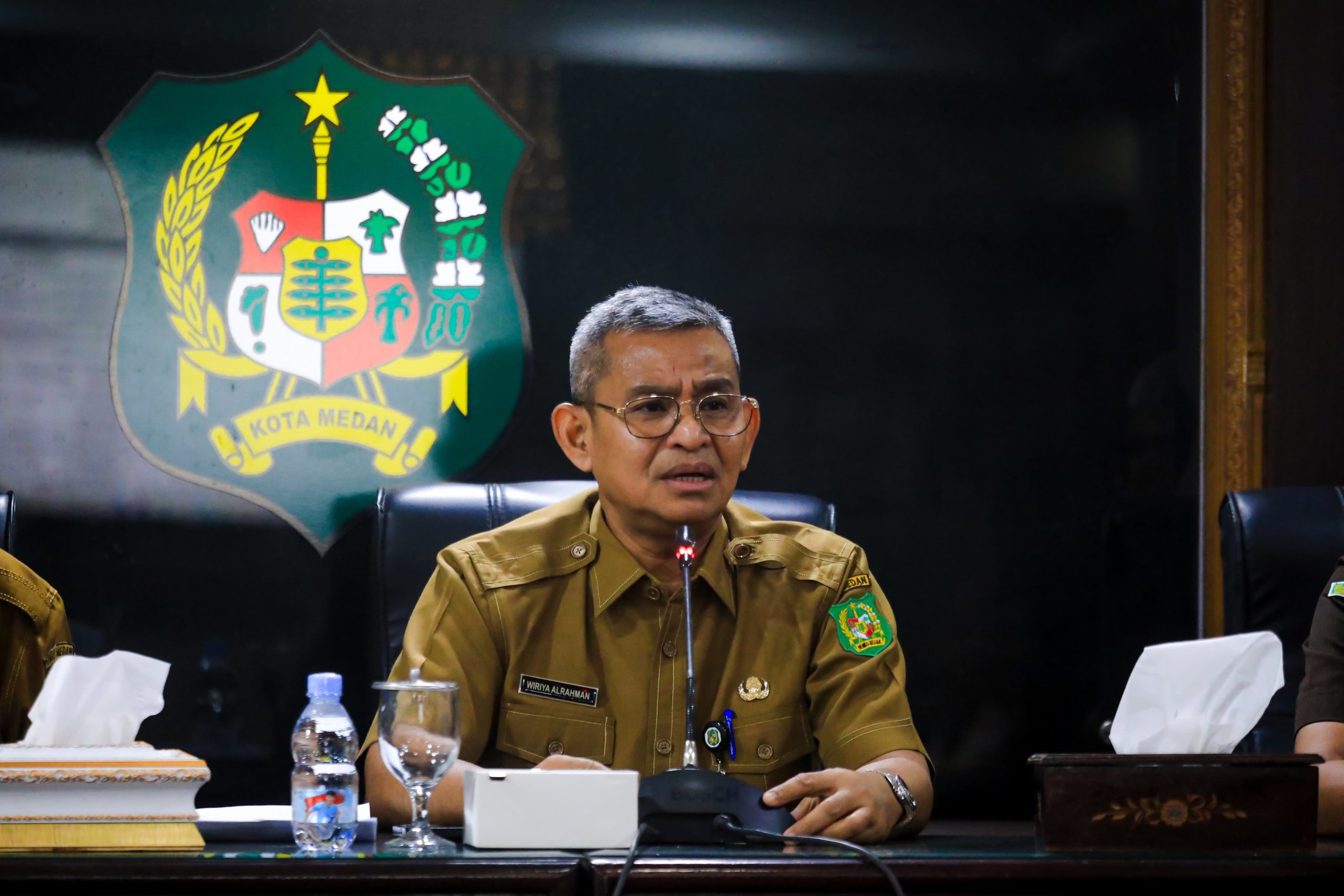 Langkah awal komitmen Pemko Medan adalah dengan menggelar rapat Koordinasi persiapan pembentukan BNN Kota Medan yang dipimpin Wali Kota Medan Rico Tri Putra Bayu Waas diwakili Sekda Wiriya Alrahman di ruang rapat II, Kantor Wali Kota Medan, Senin (14/7/25). Hadir dalam pertemuan tersebut, Mewakili Kejari Medan , Kepala BPS Medan, Asisten Umum Ferry Ichsan, Pimpinan Perangkat Daerah diantaranya, Kaban Kesbangpol Andy Mario, Kadis Kominfo Arrahmaan Pane, Kepala Brida Mansyur Syah dan Kadis UKM Koperindag Benny Iskandar.