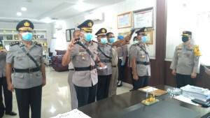 Para pejabat Polrestabes Medan dan personil yang hadir terlihat menggunakan masker guna pengantisipasi dan mencegah merebaknya wabah virus corona tersebut atau covid-19.