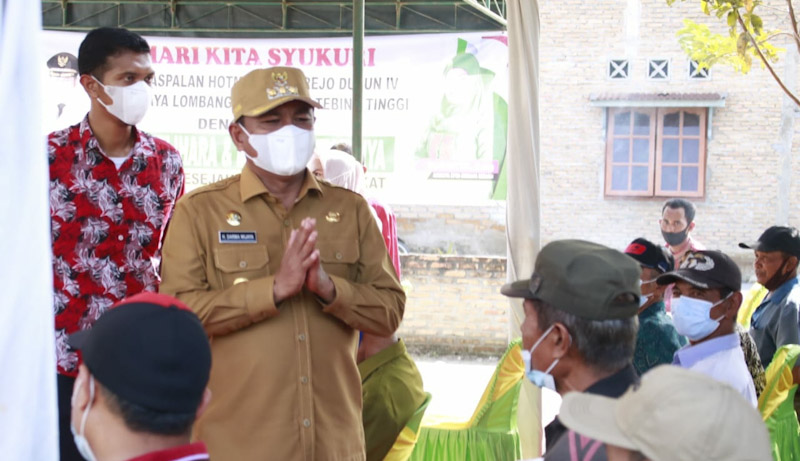 Kali ini, Bupati Sergai diundang hadir dalam syukuran peresmian jalan sepanjang 1.373 meter x 3.5 meter, yang diselenggarakan masyarakat Desa Paya Lombang, Kecamatan Tebing Tinggi, Selasa (26/10/2021).