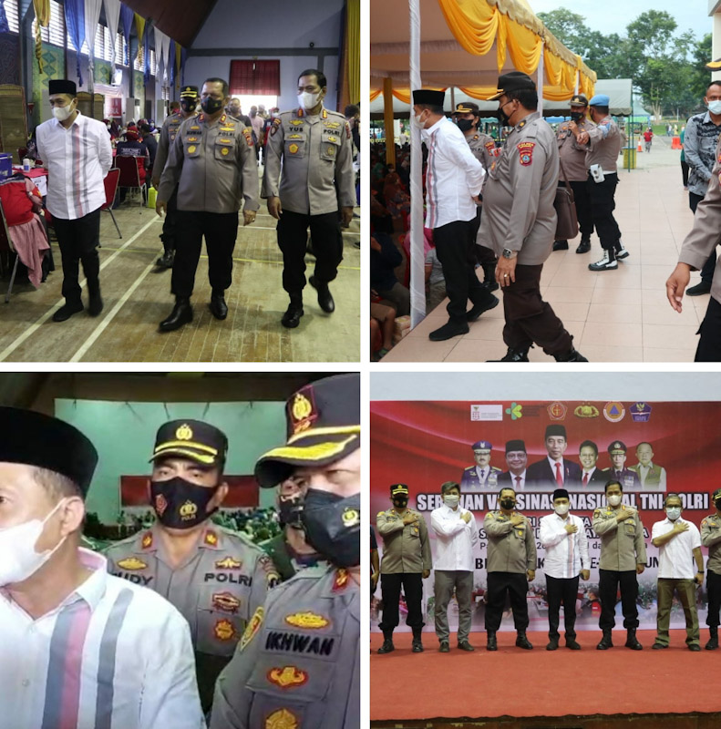 Kapolres Batubara AKBP Ikhwan Lubis SH MH dan Bupati Batubara Ir. Zahir MAP Sabtu siang tampak mengawasi dan mengisyaratkan jajarannya untuk bekerja keras dalam melakukan Penyelamatan kepada masyarakat dari bahaya Covid-19 dengan mengajak masyarakat untuk segerah bervaksin.