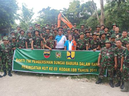 Sambut HUT Ke-69, Prajurit Kodam I/BB Bersihkan DAS Sei Babura