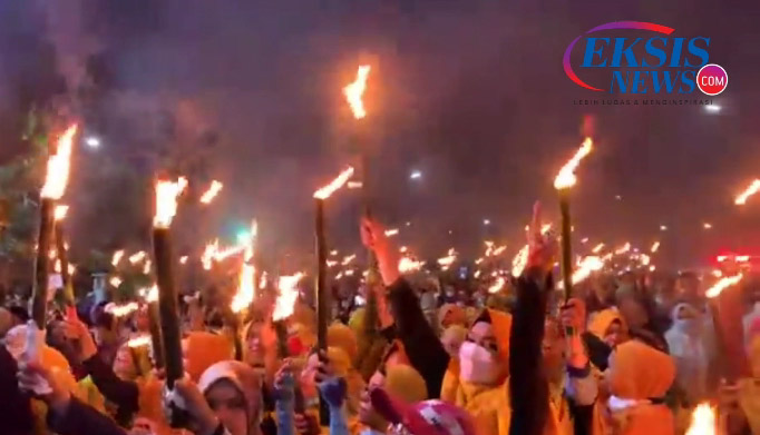 EKSISNEWS.COM, Medan – Sambut Bulan Suci Ramadan 1443 H, ribuan warga Kota Medan antusias mengikuti pawai obor, Rabu (30/3/2022) malam.