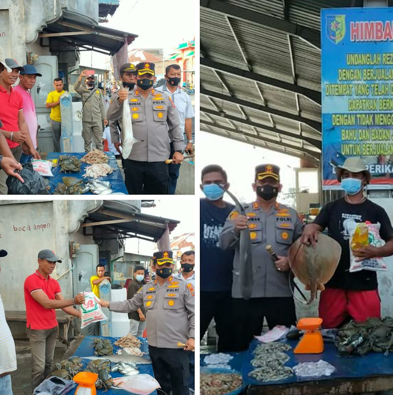 Dalam bakti sosial Kapolres Bersama KSJ pada Kamis sore itu, mengucurkan 100 sembako dan tali asih untuk para pedagang di pajak TPI Tanjungtiram.(ENC-Bm)