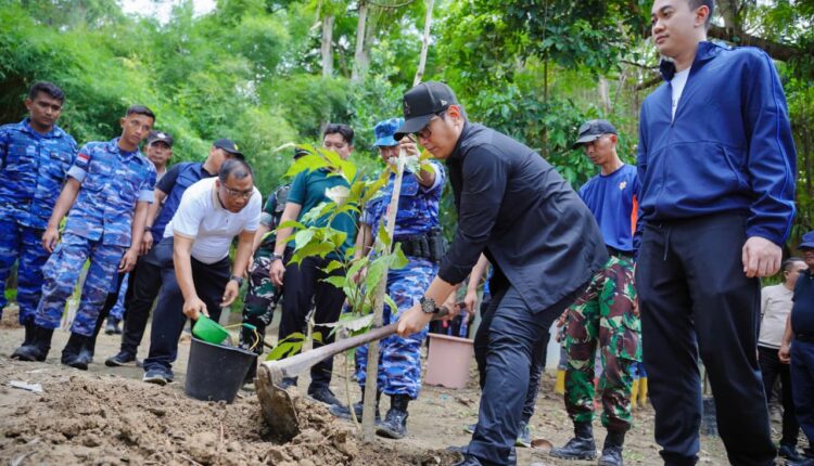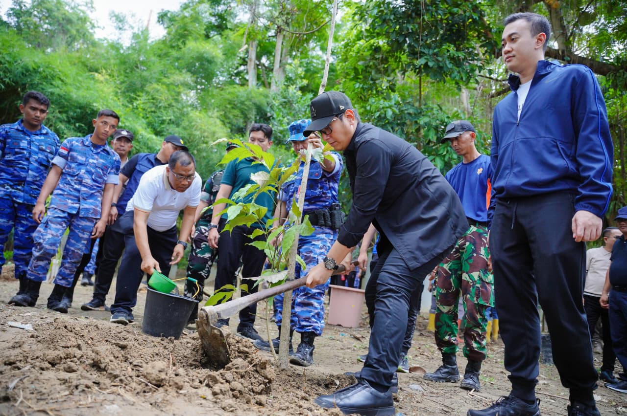 Usai menyapa dan berdialog dengan warga, Wali Kota Medan Rico Waas melakukan aksi penanaman pohon di bantaran sungai Babura. (ENC-1)