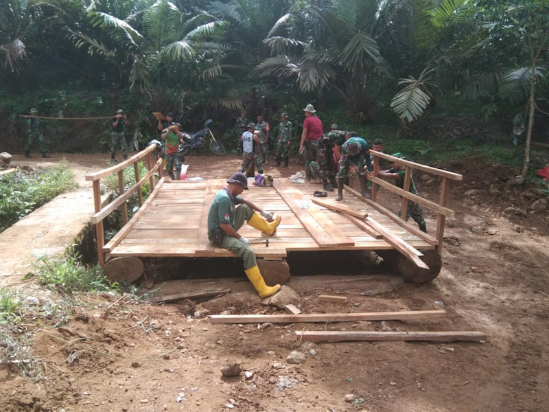 Satgas TMMD ke-117 Kodim 0212/TS yang di komandoi Serka Herman pada pembangunan jembatan baru di jalan bukaan desa Sitaratoit bersama personil dan warga rampungkan pembanguan jembatan titik ketiga di desa Sitaratoit,kecamatan Angkola Barat kabupaten Tapanuli Selatan.