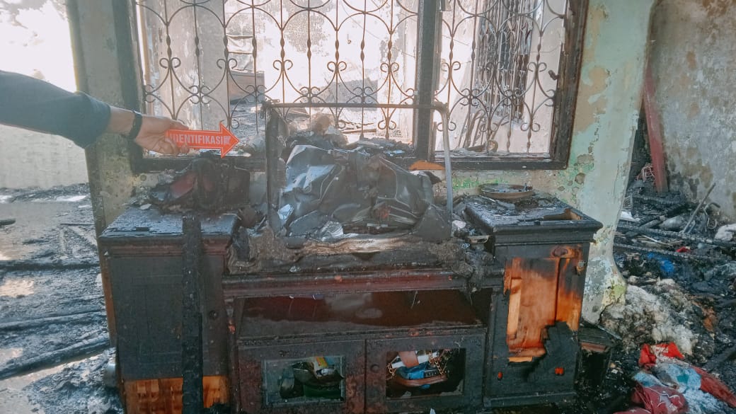 “Anak korban yang bernama M Impun Siregar sedang memasak keripik ubi menggunakan kompor tungku dengan bahan bakar Gas ukuran 3 Kg dan satu buah kuali berisi minyak. Kemudian terjadi sambaran api keatas hingga membakar rumah dari belakang sampai kedepan, dimana barang-barang korban yang berada di dalam rumah semuanya terbakar beserta satu unit sepeda motor Yamaha Mio,” ucap Basrah.