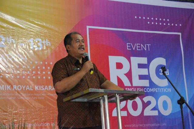 Mewakili Bupati Asahan, Sekda Asahan Taufik Zainal Abidin buka secara resmi event 3RD  REC tahun 2020. Selesai membuka, dirinya menegaskan Pemkab Asahan konsisten mendukung program Pemerintah Pusat dalam meningkatkan kualitas sumber daya manusia termasuk di bidang IT dan bahasa asing. “Pemkab Asahan sangat mengapresiasi kegiatan penunjang kurikulum dan akademik seperti Royal English Competition yang dilaksanakan kali ini,” urai Sekda. Lebih lanjut beliau berharap kegiatan ini dapat mendorong siswa dan mahasiswa untuk gemar berbahasa Inggris.(ENC-Akm)