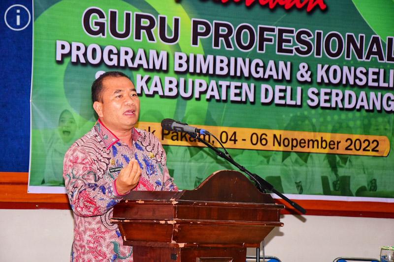 EKSISNEWS.COM, Lubuk Pakam – Sekretaris Daerah (Sekda) Kabupaten Deli Serdang, H Timur Tumanggor SSos MAP membuka Pelatihan Guru Profesional dalam Program Bimbingan dan Konseling se-Kabupaten Deli Serdang Kerjasama dengan Universitas Nahdlatul Ulama Sumatera Utara (UNUSU) dan Dinas Pendidikan Deli Serdang di Aula Cadika, Kwarcab Pramuka Deli Serdang, Jumat (4/11/2022).