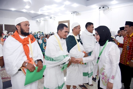 MEDAN, Eksisnews.com – Sekretaris Daerah Provinsi Sumatera Utara (Sekdaprovsu) Sabrina melepas keberangkatan 390 jemaah calon haji (Calhaj) kloter 13 di Asrama Haji Medan, Jalan AH Nasution Medan, Kamis (25/7/2019). Selain melaksanakan ibadah haji sungguh-sungguh, pada Calhaj juga diharapkan dapat menjaga nama baik bangsa.