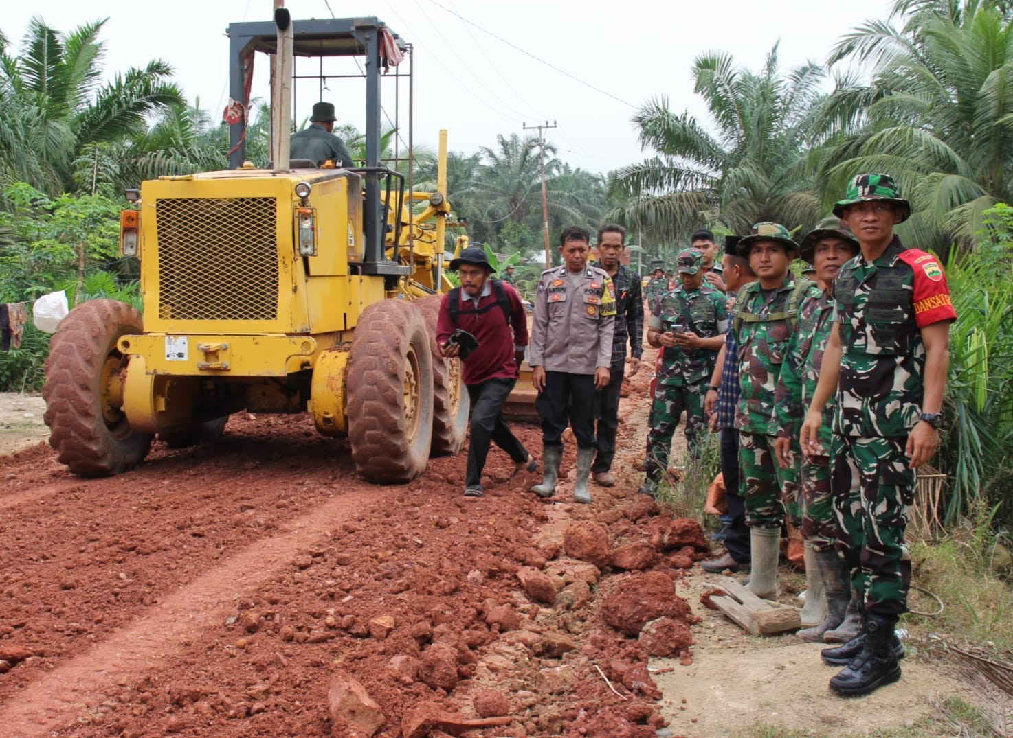 165 orang personel gabungan terdiri dari TNI Polri, pemda dan warga dibantu alat berat melaksanakan program sasaran fisik dan non fisik TMMD 120.