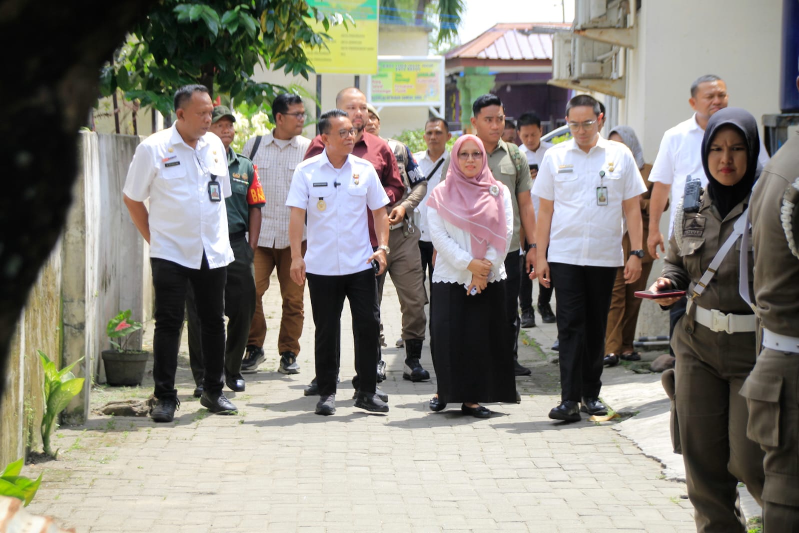 Saat peninjauan di Pustu Tanjung Mulia Hilir, jalan Kawat VII, Zakiyuddin Harahap didampingi Plt. Kadis Kesehatan Kota Medan Irliyan Saputra, Camat Medan Deli Indra Utama dan Plt Puskesmas Medan Deli, dr Budiarti melihat kondisi bangunan yang sudah kurang layak menjadi fasilitas kesehatan.