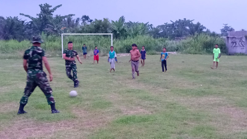 Kedekatan satgas TMMD dengan anak-anak di lokasi memberikan motivasi tersendiri. Dengan bermodalkan bola, tidak mengurangi semangat mereka bermain bola tampak wajah – wajah ceria seiring tim yang saling berebut dan memasukan bola untuk dimasukan ke dalam gawang lawan, tak ada wasit maupun hakim garis serta waktu pertandingan berakhir.
