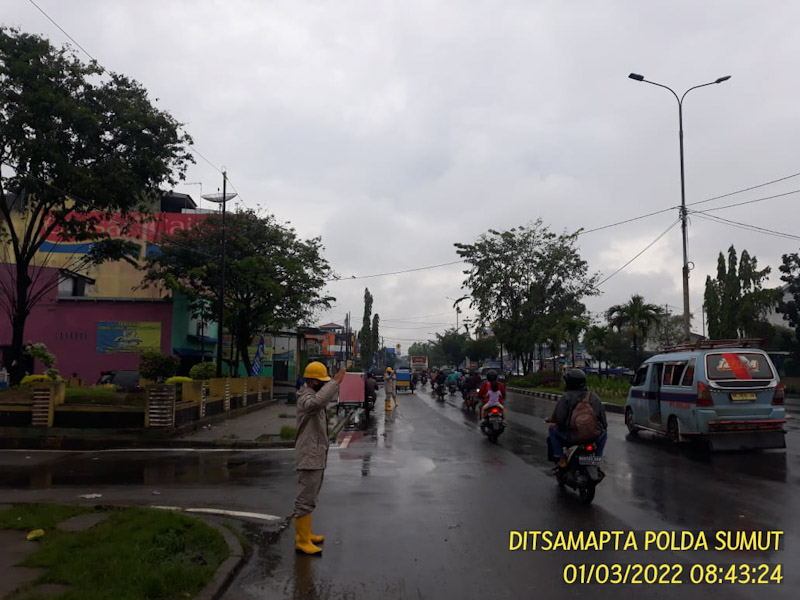 Seiring fenomena cuaca yang terjadi terkait intensitas hujan di wilayah hukum Polrestabes Medan, personil Dit Samapta Polda Sumut pun di siagakan.
